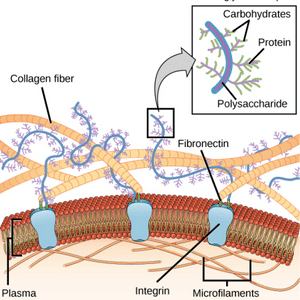The extracellular matrix (ECM) is the material found around and between cells binding them together, and is made up mostly of collagen along with other proteins